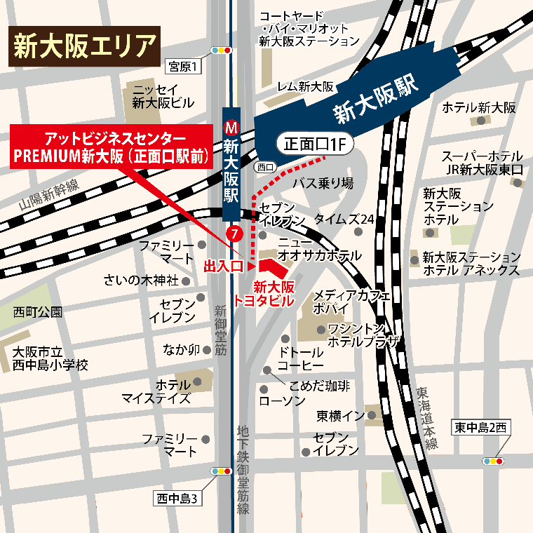 地下鉄 御堂筋線「新大阪」駅 南改札 7番 徒歩1分